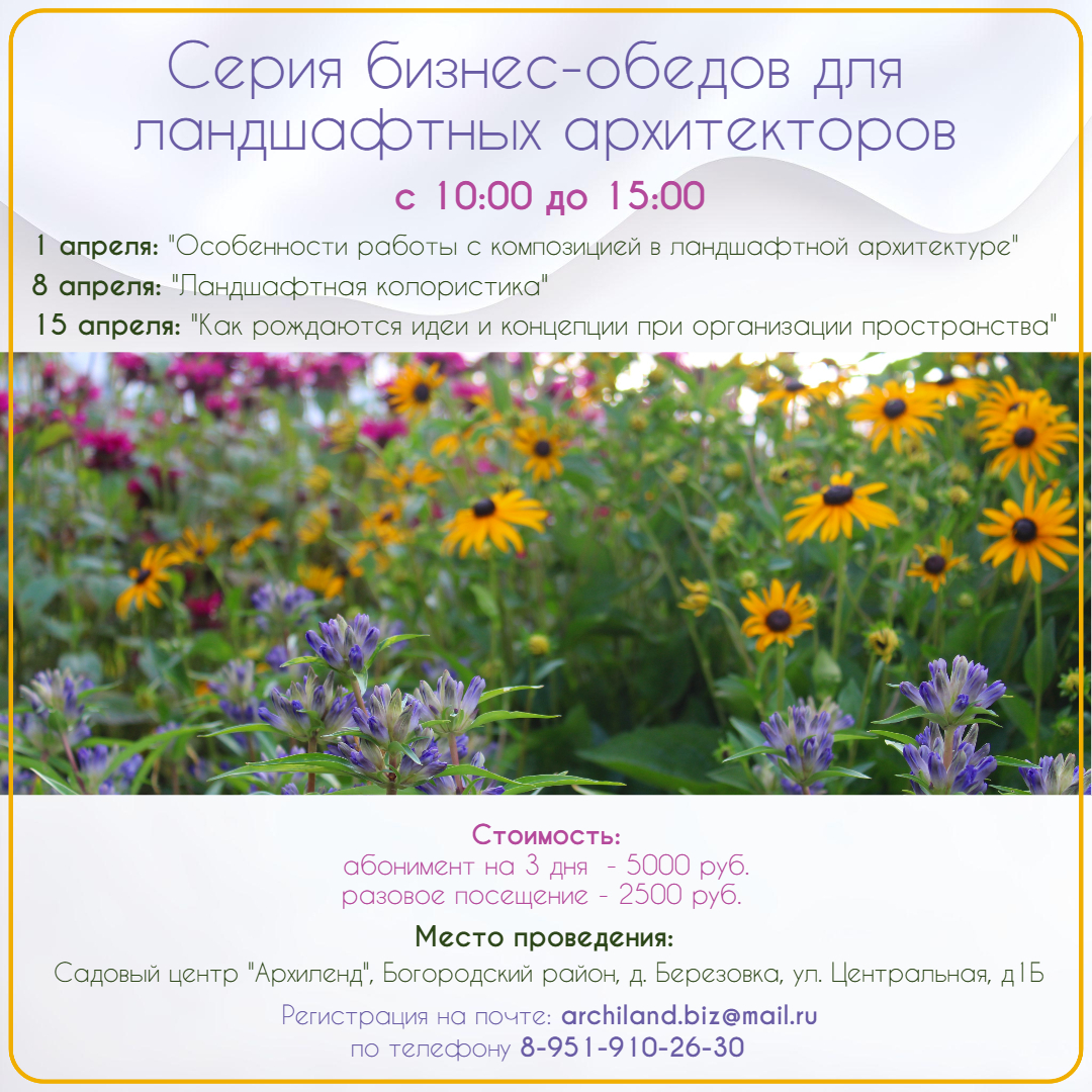 Серия бизнес‑обедов для ландшафтных архитекторов в питомнике Архиленд (Богородский район, д. Березовка, ул. Центральная, д. 1Б.)