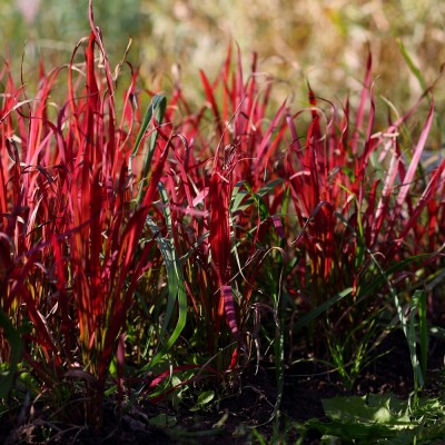 Многолетний вертикальнорастущий эффектный злак высотой 30-50 см и в ширину до 60 см. Листья узкие, жесткие, заостренные, имеющие очередное расположение. Молодые листья ярко-зеленого цвета и только верхняя их часть окрашена красным, а старые листья практически полностью винно-малинового цвета.