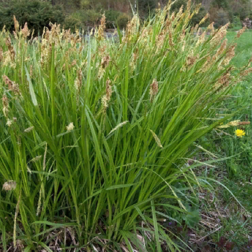 Высота 30 см, образует плотные дернины. Листья узкие, плоские, зеленые. Цветет в мае-июне. Соцветие состоит из нескольких колосков высотой 15-30 см, цвет светло-зеленый, к осени становятся коричнево-желтыми. Предпочитает солнце или легкую полутень, влажную, питательную почву. Хорошо переносит морозы, не нуждается в подкормке.