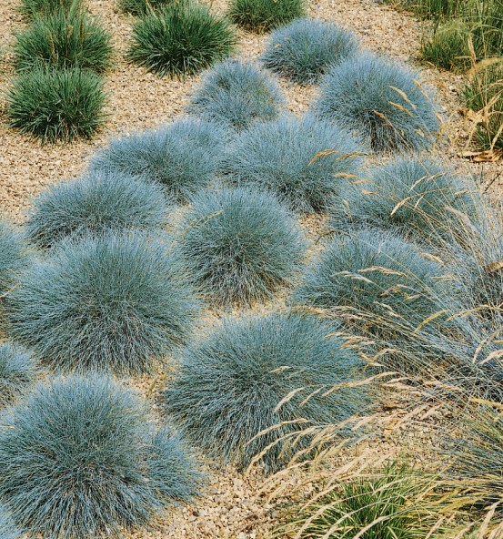 Листья: узкие, линейные, жёсткие, с характерным серебристо‑голубым отливом (особенно яркий оттенок проявляется на солнечных участках).