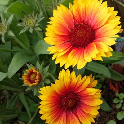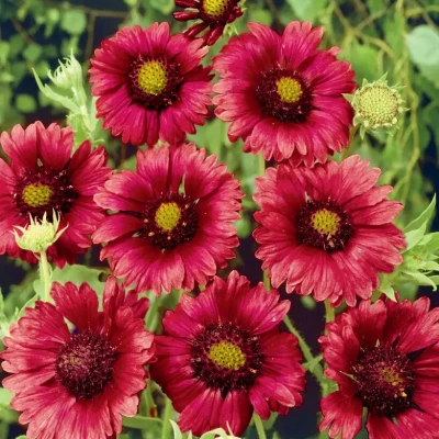 Растение многолетнее. Стебли прямые, в нижней части изгибающиеся, густо опушенные, до 75 см высотой, нуждаются в подвязке. Листья простые, продолговато-овальные или ланцетные, цельнокрайные или зубчатые, опушенные; прикорневые на черешках, стеблевые сидячие. Соцветия одиночные, до 12 см в диаметре. Язычковые цветки пестрые, яркой окраски, преимущественно желтых, оранжевых и медно-красных тонов; трубчатые — желто-пурпуровые. Цветет с июня месяца.