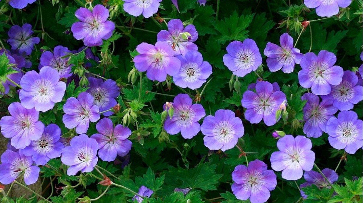 Латинское название: Geranium ‘Rozanne’ (синоним — Geranium × cantabrigiense ‘Gerwat’).