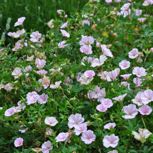 Цветки крупные,многочисленные, светло розовые с ярко-розовыми прожилками, диаметром до 2,5 см. Листья округлые, глубоко рассеченные на линейные доли. Высота куста до 15-18 см, куст низкий, плотный,диаметром до 30 см. Цветет обильно и продолжительно с июня посентябрь.
