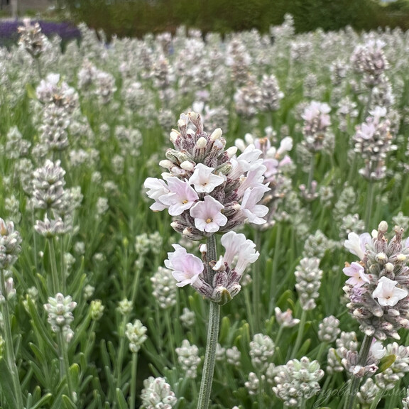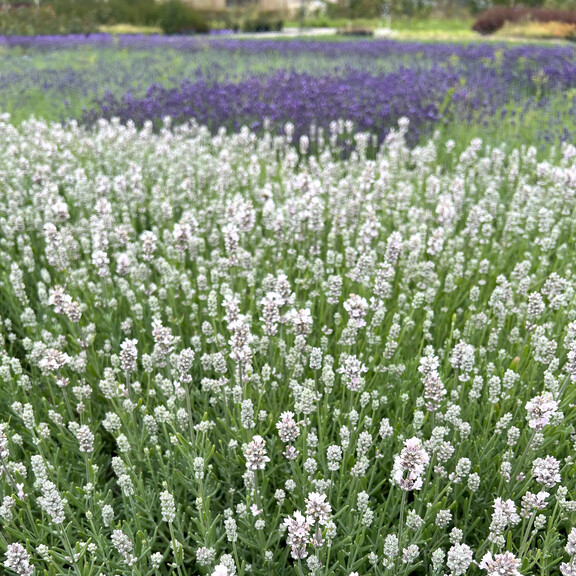 Компактный сорт лаванды узколистной с белоснежными соцветиями и насыщенным ароматом. Отличается сдержанным ростом и плотной формой куста, что делает его идеальным для небольших садов, контейнеров и бордюров.
