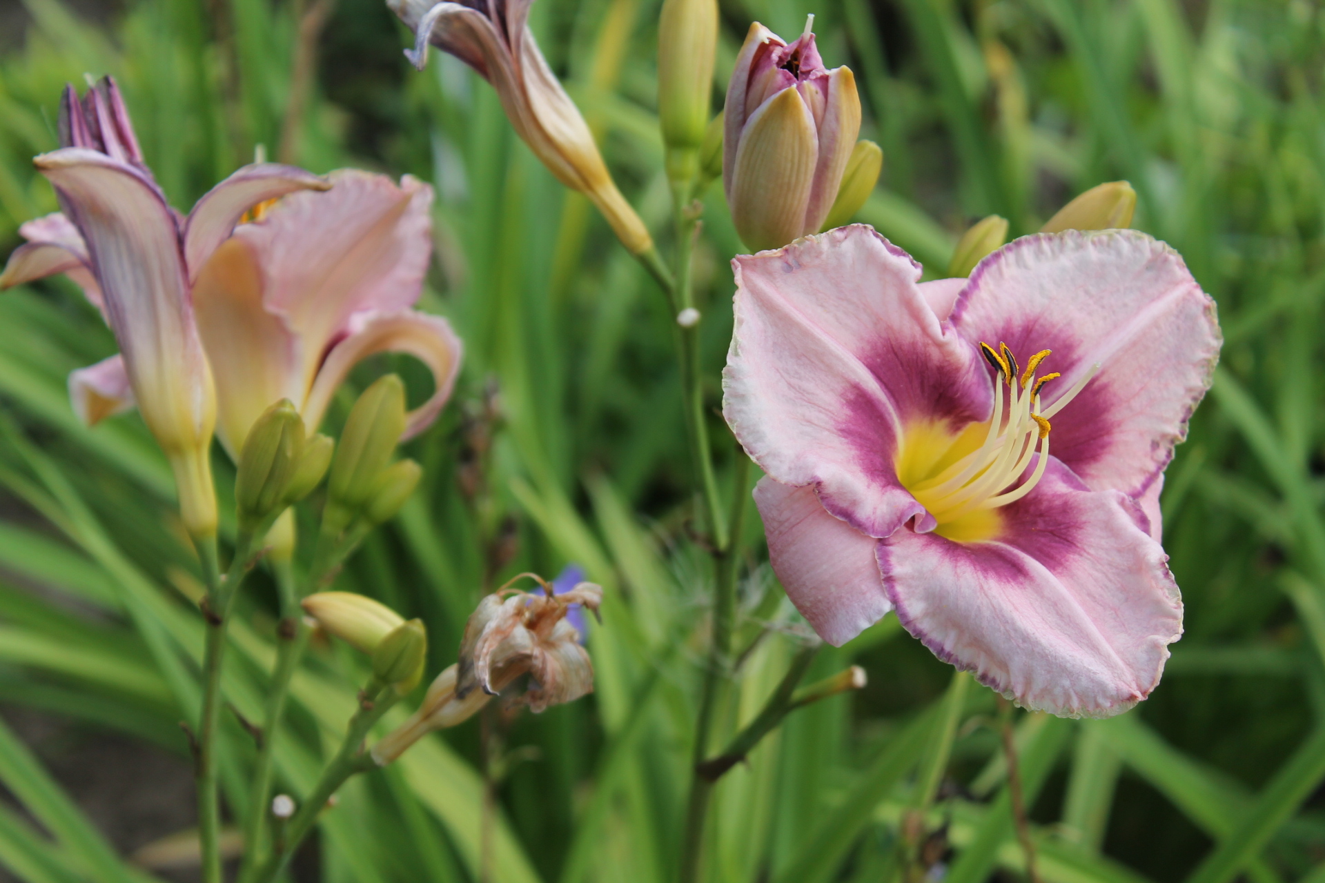 Высота до 70 см. Цветы розовые с фиолетовым центром, горло желто-зеленое, диаметром до 14 см. Цветение с начала августа. Светолюбив, засухоустойчив, в укрытии на зиму не нуждается.