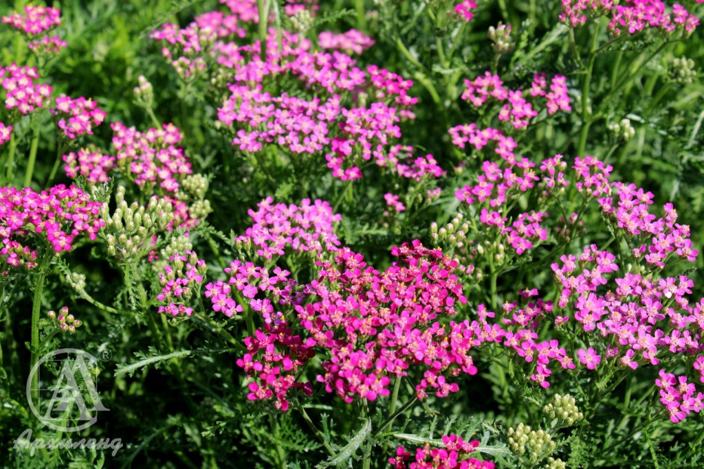 Крупный род тысячелистника (Achillea) из семейства сложноцветных (Compositae), расселившийся в умеренных, арктических и высокогорных районах Северного полушария. Красивоцветущее растение высотой 120 см, для солнечных мест. Листья серовато-зеленые, ажурные. Цветки собраны в крупные (до 15 см в диаметре) плоские зонтики, цветение в июне-сентябре. Тысячелистник одним своим присутствием благотворно влияет на окружающие растения. Он так же полезен в растительном сообществе. Оказывается, тысячелистник обладает повышенной способностью извлекать из почвы серу и стимулировать ее поглощение соседями.
