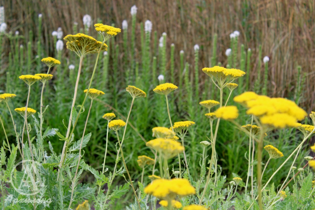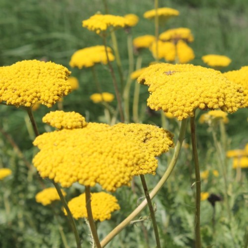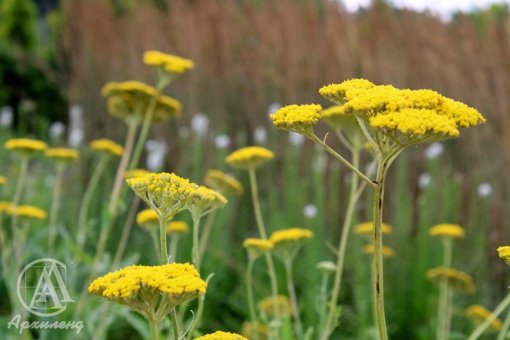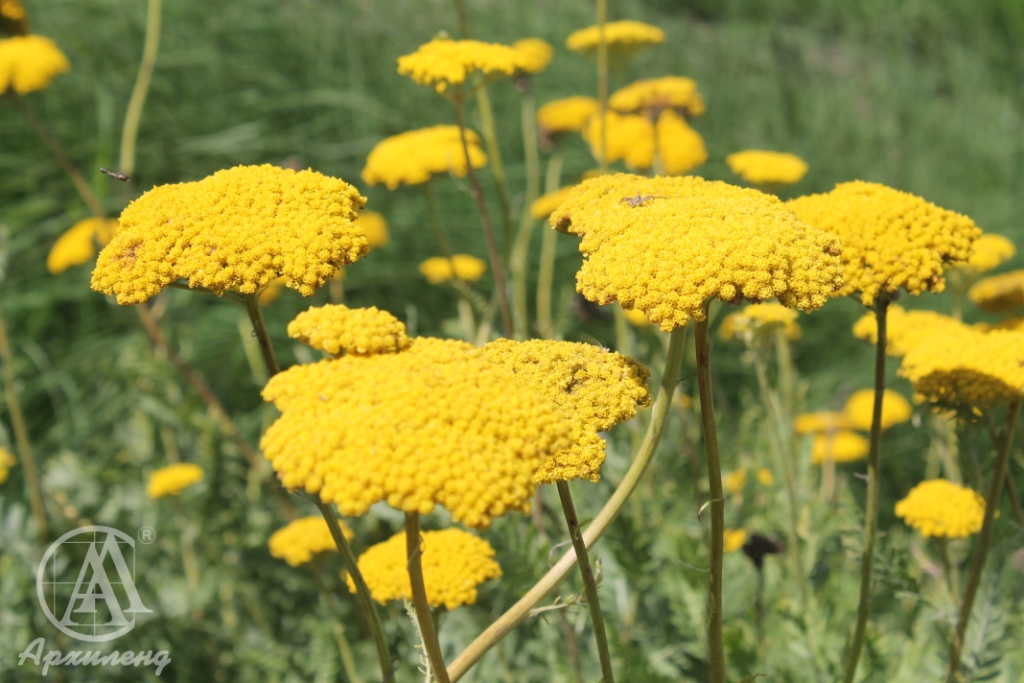 Красивоцветущее растение высотой 120 см. Листья серовато-зеленые, ажурные, перисто-раздельные. Цветки ярко-желтые, собраны в крупные, до 15 см в диаметре в виде плоских зонтиков, цветение в июне-сентябре. Светолюбив, почвы дренированные, известковые. На 1 кв.м высаживается 6-9 шт.