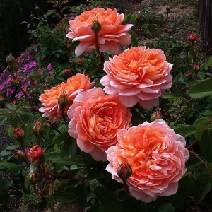 Яркая роза с романтическим раскрытием округлого бутона, густомахровый сорт.