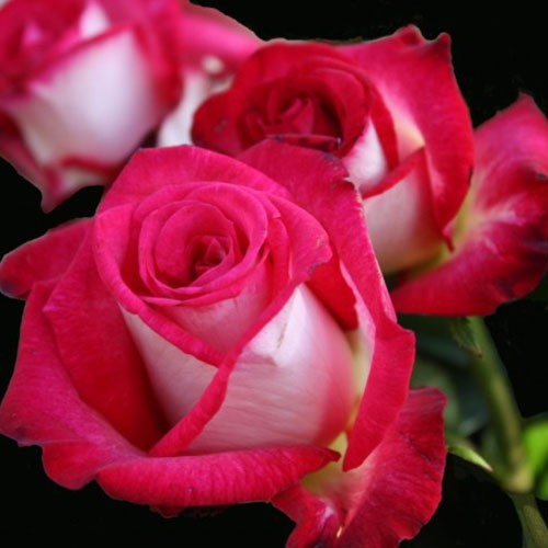 В полном роспуске цветки насыщенно малиновые, с внешней стороны лепестков — серебристо-белые с малиновыми кончиками. Аромат нежный, приятный, но не слишком интенсивный.